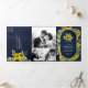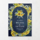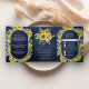 Invitation Trois Volets Tournesols et Eucalyptus 3 en 1 Mariage bleu marin