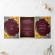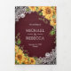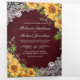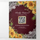 Invitation Trois Volets Tournesols rustiques Burgundy Wood QR Code Mariage