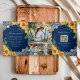 Invitation Trois Volets Tournesols rustiques Marine Bleu Bois QR Code Mari