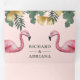 Éblouissez vos invités avec cette élégante invitation de mariage à thème tropical tout-en-un avec de beaux feuilles et de mignons flamants roses face à face avec carte postale RSVP détachable. Ajoutez simplement les détails de votre événement sur ce modèle facile à utiliser et ornez cette carte avec votre photo préférée pour en faire une invitation unique.