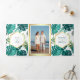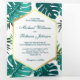 Invitation Trois Volets Turquoise blanc Palm Monstera Feuille Mariage