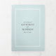 Cette belle conception tout-en-un de faire-part de mariage dispose d'un cadre simple mais élégant sur chaque panneau de l'invitation. La couleur arrière - plan est un bleu pâle doux associé à une élégante typographie gris charbon. L'intérieur de la carte contient l'invitation, les détails du mariage et une carte rsvp qui peut être coupée et envoyée par la poste en l'état. Veuillez noter que la carte rsvp nécessite un affranchissement standard de première classe (pas le tarif de la carte postale). Cette conception peut être customisée à N'IMPORTE QUELLE couleur de votre choix en éditant l'arrière - plan intérieur (premier panneau, panneau central et dernier), l'arrière - plan extérieur, et l'arrière - plan de couverture extérieur (sons compliqués mais c'est très facile !) Comme tous les cadres, les couleurs arrière - plans et le texte sont tous blancs, bleu pâle et gris charbon.