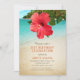 Tropical Beach Hawaiian Theme 21st Birthday Party Invitations. Il dispose d'une plage tropicale avec une belle fleur d'hibiscus rouge. Vous pouvez modifier tous les titres et informations textuels pour adapter votre célébration. Vous pouvez également modifier la couleur du texte. Conçu par superdazzle.com