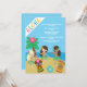Jolie danseuse hula personnalisée filles sur une plage pour votre fête luau. Customisez cette jolie invitation à la fête d'anniversaire de l'île tropicale pour une fête balnéaire sur le sable. Doté d'un palmier cool, il danse à côté des statues de Tiki et de l'eau bleue.