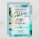 This beautiful wedding invitation features a coastal or island themed design with a gorgeous watercolor landscape background of a tropical beach with palm trees, pristine sands and turquoise or aqua colored ocean waters. It includes fancy script lettering with elaborate flourishes decorating the word "wedding" and the names of the bride and groom prominently displayed in block lettering. Simple, stylish, and glam, this invitation is a lovely way to invite your friends and family to share in your joy on your special day. Perfect for a destination wedding in an exotic location.