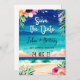Announce the beginning of your sun-kissed love story with our 'Tropical Blooms' Summer Beach Wedding Save the Date. This enchanting design, adorned with vibrant flowers and tropical leaves, captures the essence of a romantic beach celebration. Mark your calendars for a day filled with love, tropical breezes, and the beauty of seaside blossoms.