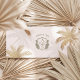 Invite your guests in style with our tropical palm tree boarding pass plane ticket destination wedding invitation. The front features a soft cream-beige background accented with faux gold sketch-style palm trees, paired with our signature hand-drawn Amour Air palm logo, heart-window airplane, and a customizable couple’s monogram. Your wedding details are elegantly arranged in authentic boarding pass format, while a scannable QR code allows guests to RSVP quickly and effortlessly. The reverse side continues the cohesive design, showcasing coordinating palm tree elements and an elegant monogram crest for a refined, high-end keepsake your guests will cherish. Perfect for couples planning a travel-themed, destination, or tropical wedding, this invitation blends timeless elegance with wanderlust-inspired charm—creating a beautiful first impression from the moment it arrives. Design and illustration by ©Moodthology Papery
