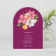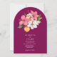 Announce your upcoming nuptials with this eye-catching arch-shaped wedding invitation. The striking design showcases a lively arrangement of pink flowers, delicate white blooms, and bright oranges, symbolizing the sweetness of your love. Set against a rich plum backdrop, this invitation exudes a modern yet whimsical charm. The text is easily readable, allowing for clear presentation of your wedding date, time, and venue. This invitation is a beautiful choice for couples who want to add a splash of color and personality to their wedding stationery.