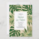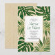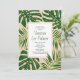 invitation à la douche nuptiale mariage feuille, verte et dorée. Il présente des feuilles de Fromage Leaf Philodendron (Monstera deliciosa) ou de Fromage Suisse Plante et feuilles de palmiers en vert avec contour doré sur beige. Votre libellé est dans un cadre blanc avec contour doré. L'arrière comprend un motif à points de polka doré.