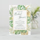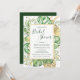 Cette invitation moderne à la douche tropicale nuptiale comprend des palmiers verts et dorés, des philodendrons et des feuilles de fougères. Un cadre doré élégant met en évidence le texte vert foncé. Les plaquettes d'or accentuent ce design botanique exotique et apportent un peu de fantaisie sophistiquée à l'invitation. Cet invitation d'oasis insulaire est parfait pour toutes les douches nuptiales à thème extérieur, plage ou tropical.