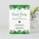 Ce design chic et moderne présente une végétation tropicale luxuriante sur le devant, avec des frondes de palmiers et des feuilles philodendrons en haut et en bas. Dans le centre sont les détails personnalisables pour votre événement spécial en vert et noir dans la typographie populaire, y compris les polices script et sans serif. Le verso de la carte présente du feuillage sur un arrière - plan vert pâle. Vous pouvez personnaliser cet élément en modifiant le texte.