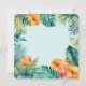 Vibrant tropical frame featuring lush green leaves and bright orange, pink, and yellow flowers. The soft blue background in the center provides a perfect space for adding custom text or imagery. This design is ideal for summer themes, tropical parties, or playful creative projects.