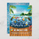 Ces invitations tropicales à la fête de la piscine de remise de diplômes sont assurées de faire rouler la fête d'été ! Modèles, y compris un modèle photo à l'arrière. Palmiers tropicaux et îlot de plage au sommet, éclaboussures de piscine réalistes et haut-parleurs de piscine, boules de plage, canards jaunes avec une excellente typographie.