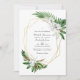 Aquarelle tendance feuilles tropicaux et magnolias blancs faire-part de mariage avec cadre géométrique or. Idéal pour un thème ou un mariage de jardin. Le code QR au verso dirige vers votre site mariage où les gens peuvent en savoir plus et rsvp.