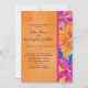 Bring bold island energy to your celebration with this Vibrant Tropical Floral Wedding Invitation. The design features a striking hand-painted floral artwork in vivid shades of orange, fuchsia, yellow, blue, and green, displayed along a colorful vertical border. The main panel showcases a warm sunset-orange background with soft texture and playful splatter accents for extra artistic flair. Elegant script and clean modern typography balance the bright palette, creating a stunning blend of tropical charm and contemporary style.