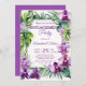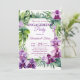 Whether you are planning a destination engagement party, a backyard summer luau, or an elegant dinner at a botanical garden, this design sets the perfect tone. The crisp white background highlights the vivid violet and green hues, ensuring your event details stand out beautifully.