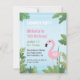 Cette invitation de fête d'anniversaire a un oeil contagieux et le flamant rose à la mode se tenant grand parmi le feuille tropical. Grand pour une fête d'anniversaire orientée orientée ou tropicale d'été ! Personnalisez facilement avec vos détails de partie dans les modèles des textes fournis.