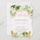 Aloha ! Venez loin au paradis pour cette invitation nuptiale tropicale de douche avec les fleurs, les ananas d'or, et le feuillage tropicaux oranges, roses et verts. Rotin secondaire.