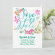 Cette carte de "Save the Date" présente un design aquarelle vibrant et ludique. Le texte calligraphié à la main est écrit en bleu sarcelle gras, entouré d'éléments festifs tels que des fleurs roses vives, des fruits orange, une bouteille de champagne et un verre à cocktail, le tout peint dans des couleurs vives. Les accents floraux et tropicaux, combinés à l'imagerie de célébration, donnent à cette carte une atmosphère amusante et joyeuse, parfaite pour les couples qui prévoient une célébration de mariage animée et enjouée.