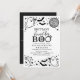 Elle l'a trouvée enceinte ! Célébrez notre future mariée magique avec un invitation de bachelorette avec des étoiles, des fantômes, une boule de disco, des chauves-souris et des boissons contre un arrière - plan blanc. Parfait pour une soirée envoûtante !