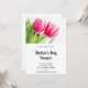 Invitation au brunch de la fête des mères avec une belle photographie printanière représentant 2 tulipes roses et des feuilles vertes brillantes.