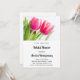 Une invitation à une fête de mariage avec une belle photographie de printemps représentant 2 tulipes roses et des feuilles vertes brillantes.