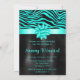Invitation Turquoise and Black Zebra Stripes Sweet Sixteen