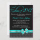 Invitation turquoise blanche noire d'obtention du diplôme de point de polka