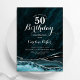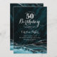 Invitation Turquoise Bleu Argent Agate Marbre 50e anniversair