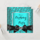 Invitation Turquoise Bleu Argent Diamants Noirs Fête d'annive