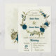 Invitation turquoise bleu beige fleurs mariage botanique