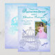 Invitez vos invités à la Quinceañera avec un carrosse à cheval scintillant entouré de libellules bleues et turquoise. La texture d'aquarelle avec un carrosse à cheval scintillant sera magnifique avec des invitations, des cartes de réponse, des enveloppes, des étiquettes et des autocollants assortis. Ajoutez facilement votre photo et transférez ce design fantaisiste de libellule bleue et de carrosse à cheval sur d'autres cartes et cadeaux.