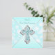 Turquoise bleu Première Sainte Communion invitation avec élégante croix de diamant turquoise bleu et argent sur un beau arrière - plan de livre bleu turquoise pétillant. Vous pouvez facilement customiser cette jolie invitation de première communion bleue turquoise en ajoutant les détails de votre événement dans la taille et la couleur de police, et le libellé de votre choix.