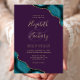 Invitation Turquoise Blue Gold Agate Corners Purple Mariage
