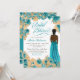 Invitation Turquoise Blue & Gold Roses Elegant Gown Fête des