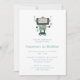 Invitation Turquoise Blue Robot Gears Simple 1er anniversaire