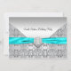 Elégant argent avec revêtement de dentelle en diamant argenté et arrière - plan bleu turquoise avec rubans en satin turquoise et centre diamant arbore invitation fête d'anniversaire sweet sixteen.