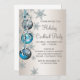 Belles flocons de neige bleu et argent turquoise et ornements Fête de Noël et invitations cocktails de vacances. Ajoutez vos détails à l'avant et/ou à l'arrière en ajoutant simplement les détails de votre événement, le style de police, la taille et la couleur de la police et le libellé. Veuillez noter que tous les modèles d'invitation que vous trouverez sur Zazzle sont des graphiques imprimés sans bijoux, arcs, surélevés, gaufrés, ou des pièces ou pièces ajoutées.
