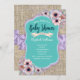 Turquoise Burlap Aquarelle Fleurs Baby shower Invitation