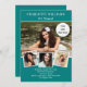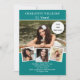Créez votre propre collage photo unique. Utilisez quatre, 4 de vos photos préférées. Personnalisez et ajoutez un nom et des détails du parti. Un arrière - plan turquoise vert, texte blanc.