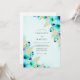 This ethereal design features vibrant turquoise and teal watercolor anemones that bloom across a serene light blue background. Shimmering gold ferns and delicate metallic-style leaves add a touch of luxury and sophistication to the botanical arrangement. The palette of soft blues and rich greens creates a refreshing and romantic mood, perfect for an elegant spring or summer event.