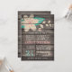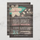 Invitation à la douche nuptiale avec fleurs roses et turquoise, design floral sur rustique vintage pays ouest, grange bois, arrière - plan imprimé en bois avec élégantes polices de style ancien. Parfait pour la campagne, la ferme, la ferme, baryade thème de la nuptiale douches / wedding showers! Cet invitation mignon et amusant est parfait toute l'année pour les douches nuptiales du printemps, de l'été, de l'automne ou de l'hiver!