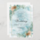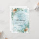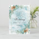 Des lavages à l'aquarelle délicats dans des teintes turquoises et sereines créent un décor rêveur. Des accents floraux rustiques dans le taupe chaud et le rougissement ajoutent une touche de charme organique, évoquant une atmosphère douce et romantique pour votre journée spéciale.