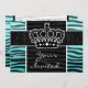 Invitation Turquoise Girly et couronne noire d'impression de
