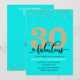 Elégant Turquoise et or 30 et Fabuleux Anniversaire Invitation avec accents de parties scintillant. Ajoutez les détails de votre fête en utilisant notre modèle facile.