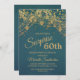 60e anniversaire invitation pour les femmes avec des lampes à cordes dorées scintillantes et un bokeh pétillant sur un arrière - plan turquoise audacieux. Cette invitation est conçue pour une dame qui fête son 60e anniversaire, mais texte, polices et libellé sont complètement personnalisables. Concevez vos invitations pour n'importe quel âge. Contactez-nous pour obtenir de l'aide sur la personnalisation ou la mise en correspondance de produits.