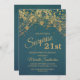 Elégante invitation de fête du 21e anniversaire pour les femmes avec de magnifiques lampes à cordes d'or et bokeh pétillant sur un arrière - plan turquoise audacieux. Le texte, la police et le libellé sont entièrement personnalisables à l'aide de l'outil de conception de Zazzle. Contactez-nous pour obtenir de l'aide sur la personnalisation ou la mise en correspondance de produits.