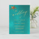 Elégant minimaliste étoile de mer sous l'eau aqua bleu turquoise budget de la plage d'été tout en une invitation de mariage de destination avec votre photo de fiançailles personnalisée, code de numérisation vers le site Web pour les détails invités et RSVP en ligne, et un design moderne script "le mariage de" calligraphie.