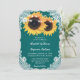 Ce faire-part de mariage rustique à fleurs de campagne avec des tournesols contre un burlap et arrière - plan en dentelle orné de lampes à cordes est parfait pour inviter vos invités à votre turquoise fête de mariage rustique, jardin, jardin ou grange inspiré des tournesols.