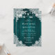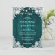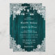 Faire-part de mariage turquoise rustique orné d'un bois de grange orné de dentelle blanche fleurie et de lampes à cordes. Un design de carte parfait pour inviter vos invités à votre turquoise pays rustique ou à votre mariage de grange.